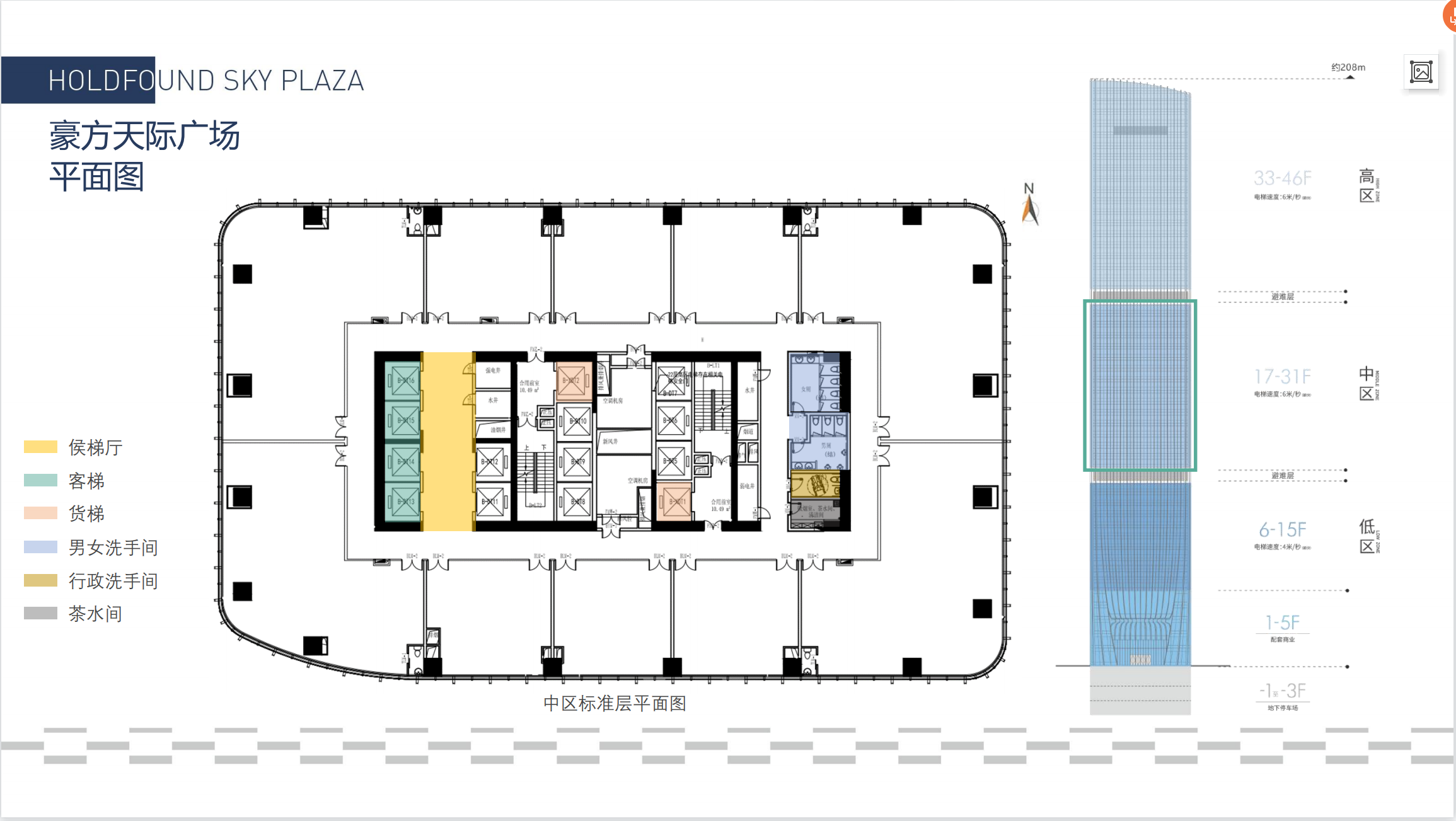 1、北环大道旁、甲级商务封面、高性价比 2、约208米天际高度 建筑美学新标准:约208米天际高度建筑美学新标准,超白玻双银中空LOW-E玻璃幕墙,奢华喷泉前广场,国际范艺术造型前雨棚,约15米挑高奢华大堂,融合现代时尚感,印证企业的王者雄心 3、4大硬核配套 铸就企业腾飞之翼: 18部日本三菱高速电梯赋能垂直效率最高速度可达6m/s,高效办公承载体,降低等候时间。 美国约克中央空调 健康新风系统国际三大品牌之一,冰蓄冷变风量空调系统, “0”噪音,勤换气,清新舒适。 中高区预留上下水位 匹配高端办公体验满足个性化商务需求。 地下充裕车位 无忧效率通勤地下3层车库,提供充裕车位,日常通勤高效泊车。 4、多元商务体验 超甲级尊享配置:天际会议中心 天际美食荟 汽车美容服务中心