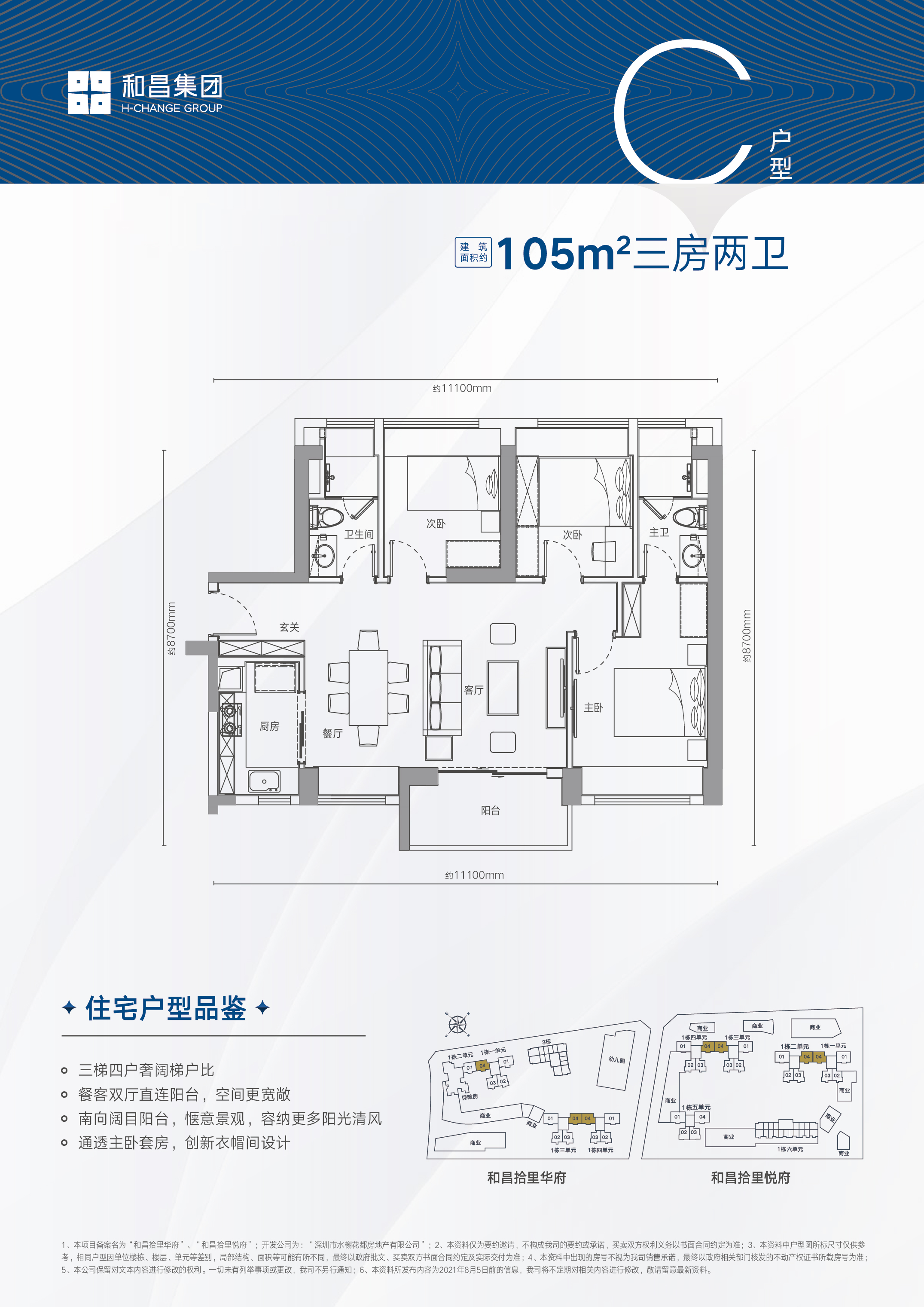 1.三梯四户奢阔梯度比 2.餐客双厅直连阳台,空间更宽敞 3.南向阔目阳台,惬意景观,容纳更多阳光清风 4.通透主卧套房,创新衣帽间设计