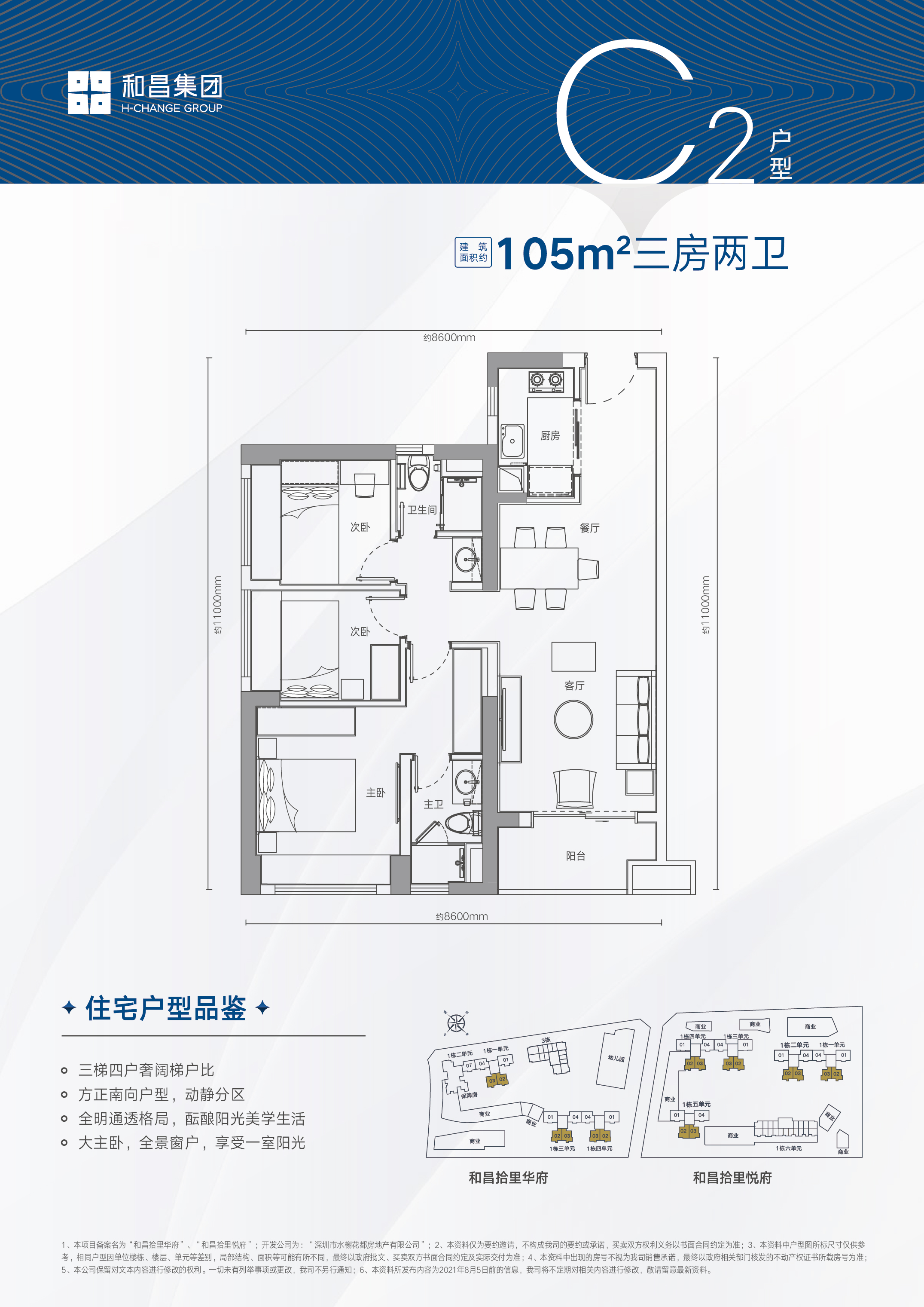 1.三梯四户奢阔梯度比 2.全明通透格局,酝酿阳光美学生活 3.横厅布局,阔绰家庭互动空间 4.约3.2米开间大主卧,南向飘窗宽幕生活