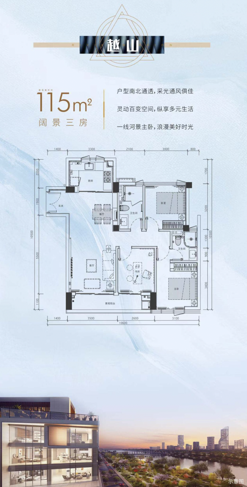 户型南北通透,采光通风俱佳 灵动百变空间,纵享多元生活 一线河景主卧,浪漫美好时光