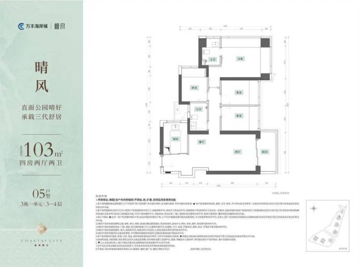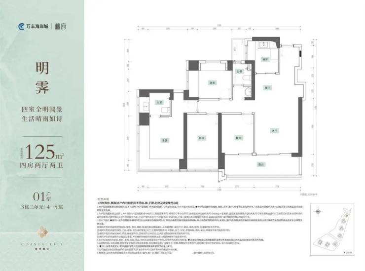 另外,项目周边还有大钟山公园、海岸公园、万丰公园三园环绕,打造"下楼即公园"、““推窗即见绿”的日常体验。