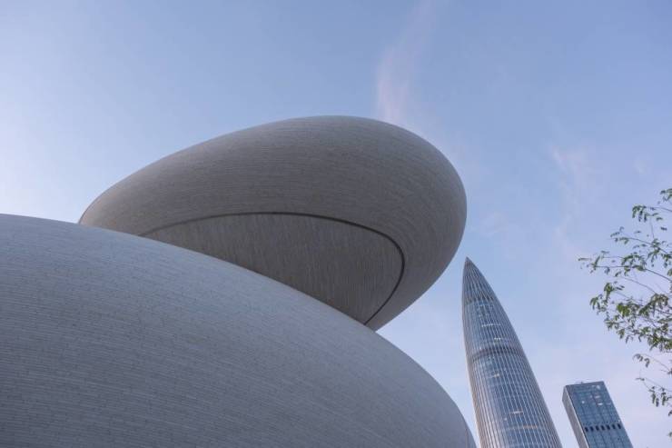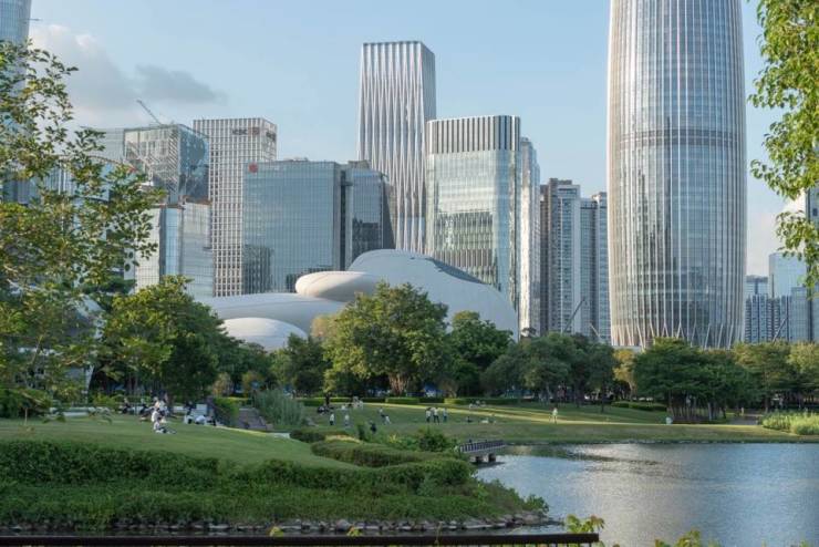 深圳湾文化广场的启幕,本身就是对“不标准时代”最有力的建筑宣言。深圳湾文化广场作为深圳重大文化设施,由MAD建筑事务所设计,华润置地代建运营。项目以“水落石出”为设计灵感,将九块宛若天成的“文化原石”镶嵌于山海之间。这片建筑群彻底打破了传统文化地标的殿堂式封闭感,通过起伏的绿色屋面、与深圳湾自然环境完全融通的连续生态系统,实现了建筑与自然、与公共生活的无缝连接。