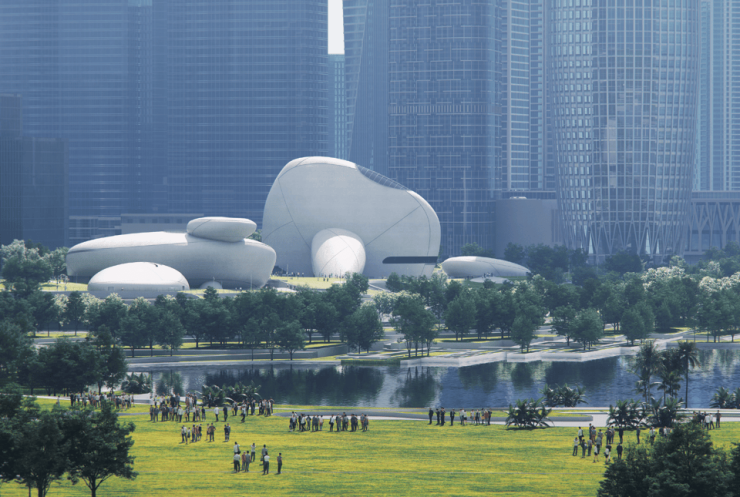 正如MAD创始合伙人马岩松的期待,“深圳湾文化广场应当是一个伴随城市发展生长的绿色城市客厅。在现代国际化大都市CBD和自然之间的这块场地,我们首先考虑的是创造一个公共市民空间,让每个人都能享受这座城市珍贵的海湾资源;再将建筑的展馆功能,有机地融入这片绿地景观之中。”