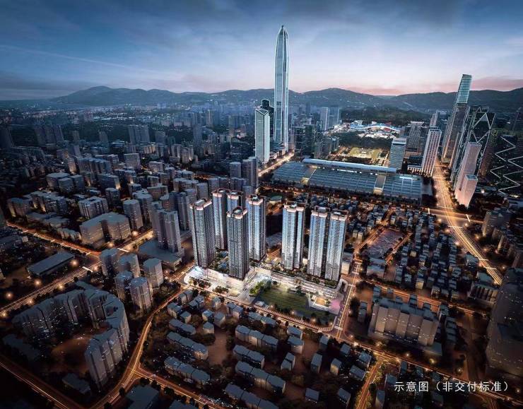 卓越缦悦所在地块,原为福田中心区规模最大的城中村之一——皇岗村。该城市更新单元整体规划建筑面积超过200万㎡,而卓越缦悦作为其首期项目,总建面约40万㎡,完全建成后体量约占整个旧改规划的五分之一。