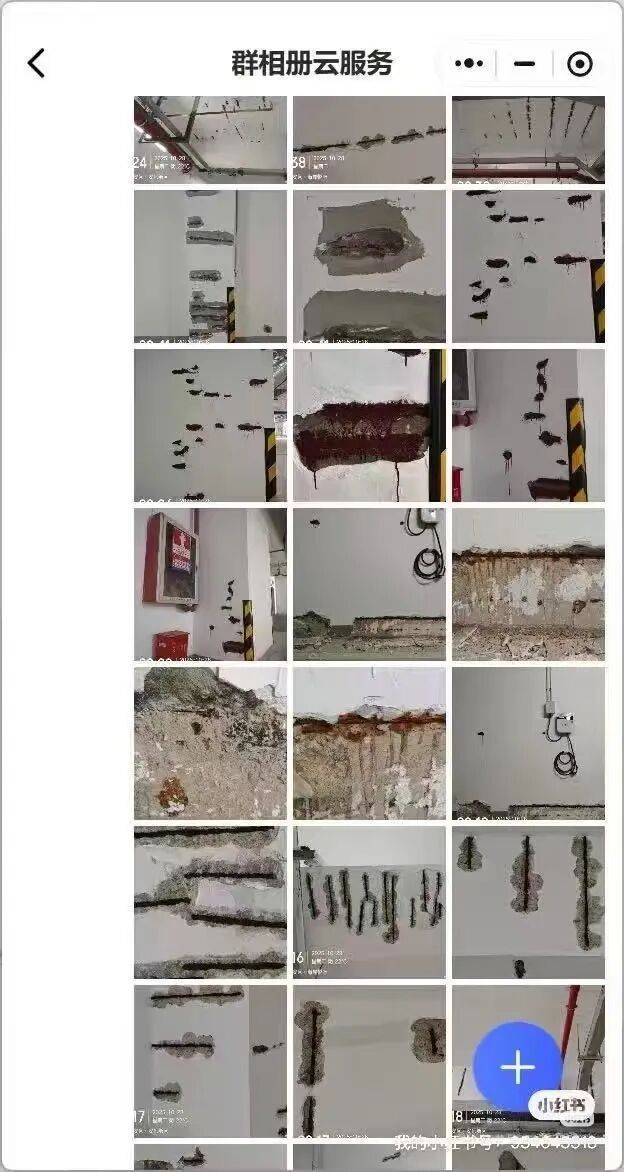 有业主晒出了小区地下车库内的照片,墙皮大面积脱落、大量钢筋裸露,并且已经锈迹斑斑。