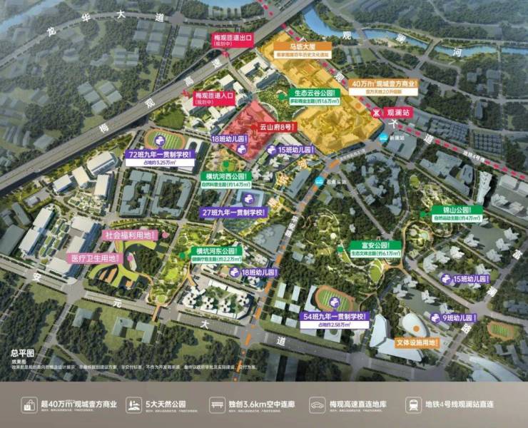 如果是自驾的话,走梅观高速则可直入小区地库,鸿荣源观城重金增设的闸道,看似大胆,却为业主带来了实打实的便利。