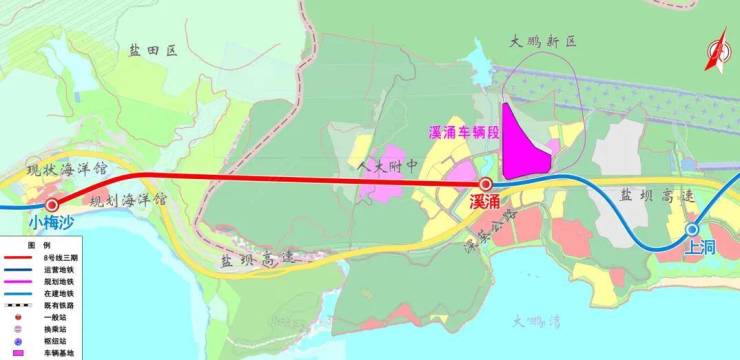 8号线三期起自小梅沙站,向东延伸至溪涌站,包含1站1区间。开通后与2&8号线贯通运营,串联南山、福田、罗湖、盐田和大鹏新区,也改写大鹏轨网“盲点”历史。