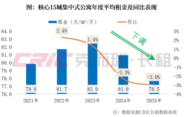2025年,中国住房租赁市场供需优化、政策加持,“量稳质升”。个人房源“以价换量”,租金承压;集中式公寓扩容,保租房成核心城市供应主力,双轨格局明晰。租金下行而出租率稳定,凸显专业化租赁产品认可度提升。