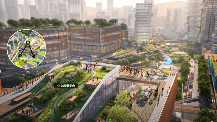 同时,围绕中央公共开放空间构建产业共享服务体系,打造黑科技走廊、展会设施、共享实验室、综合政务金融服务平台,促进跨行业交流,提升创新传播力与专业服务效率。