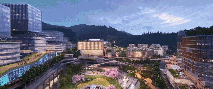 在空间规划与功能布局上,玉龙片区充分结合山地地形特色打造多维立体的城市空间,呈现“创智高地+生态绿谷+漫游公园”的独特形态。