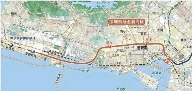 穗莞深城际深圳机场至前海段自穗莞深城际深圳机场站(不含)引出,经宝安区、前海合作区,至前海站(含),线路全长15.2公里,设西乡、宝安、前海3座地下车站,预留皇岗口岸方向延伸条件,设计时速160公里。