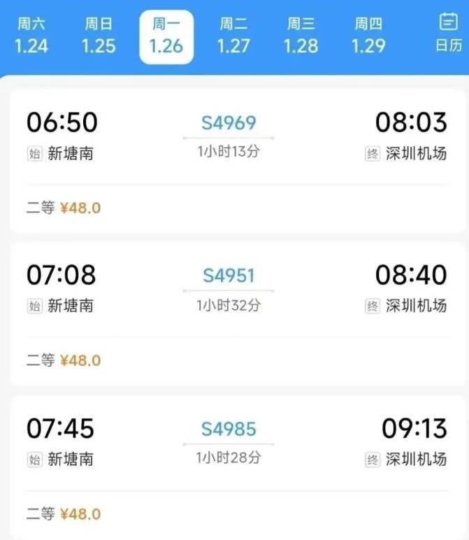 与之相比,广深港高铁从广州南至深圳北仅需30分钟左右,二等座票价74.5元;深圳地铁11号线由福田至机场约40分钟,票价仅9元。