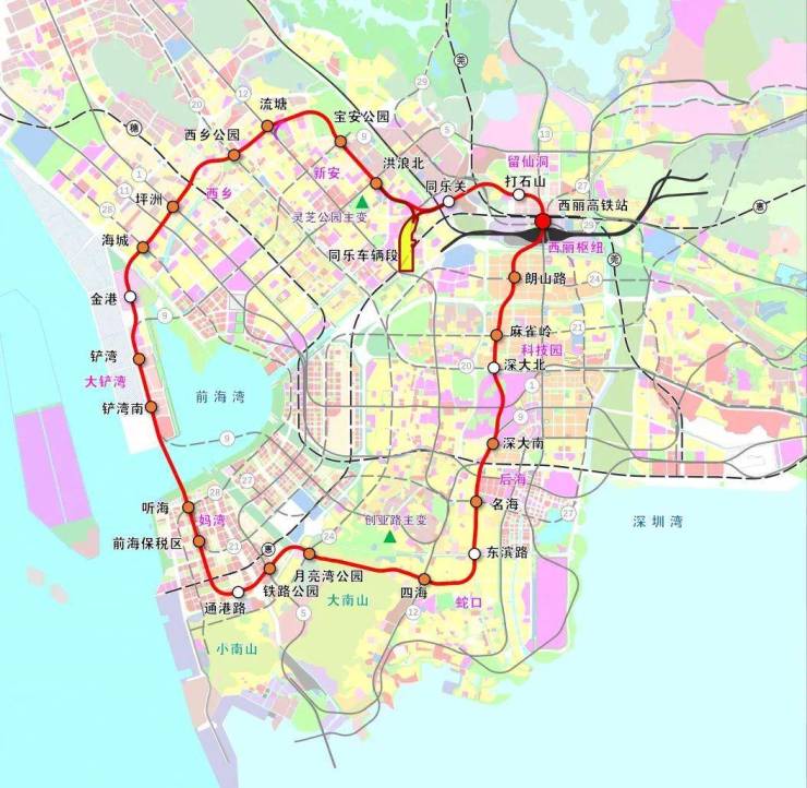 线路建成后,将串联深超总、白石洲、西丽、石岩、光明科学城等片区和城市功能节点,进一步加强外围区域与城市核心区的联系功能。
