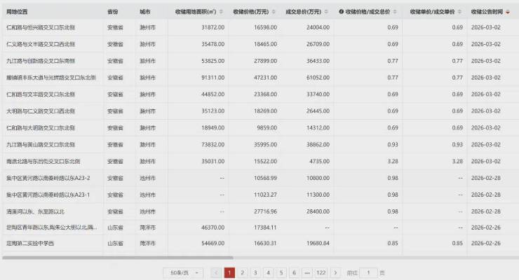 根据中指不完全统计,截至2026年2月末,全国28个省市已公示的拟使用专项债收购闲置存量土地的总金额超7700亿元,专项债实际发行超3350亿元,占比约43%。(详细数据请查看中指数据CREIS)