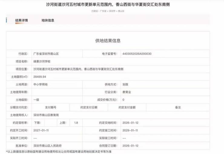而据媒体@湾财ND 报道,有消息显示学校将于2027年开工、2029年竣工。