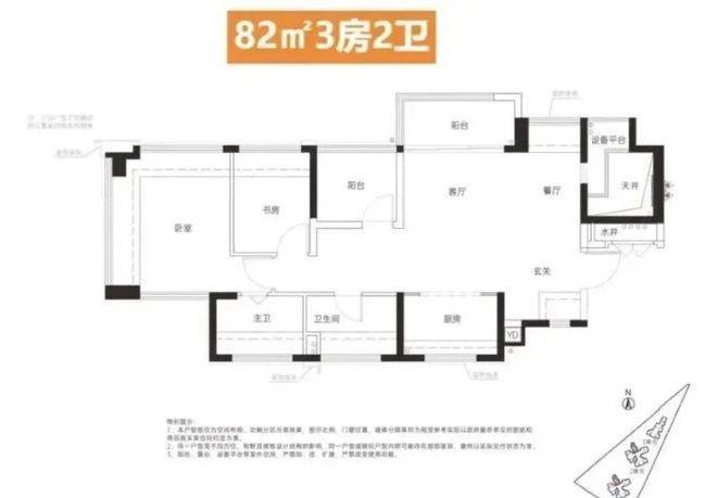 建面约78-84㎡ 3房2卫:主力户型。其中约84㎡户型做到了横厅南北通透,这在同面积段产品中极为罕见,极大地提升了居住舒适度。