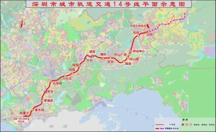 深圳地铁14号线全长50.34千米,是深圳轨道交通四期工程最长的线路,也是连接深圳市中心区与东部地区的重要交通走廊,途经福田、罗湖、龙岗、坪山四区,共设车站18座。其中,4座枢纽站、9座换乘站,全程运行时间约55分钟,市民乘坐14号线从福田到坪山仅需40分钟。