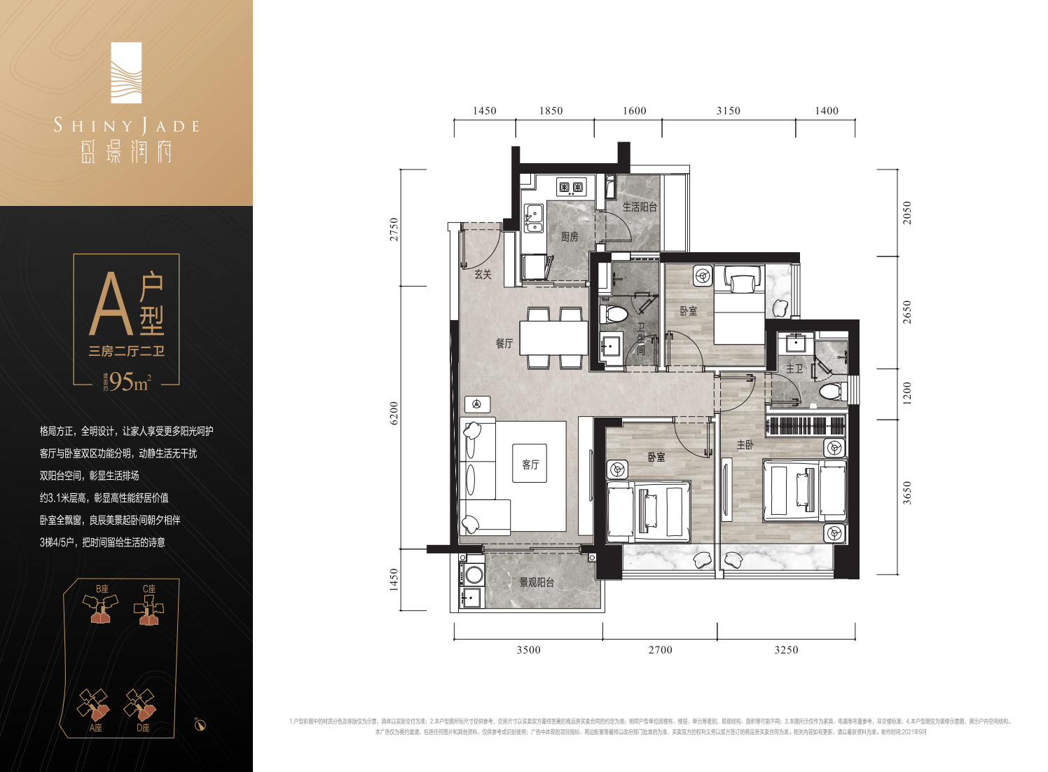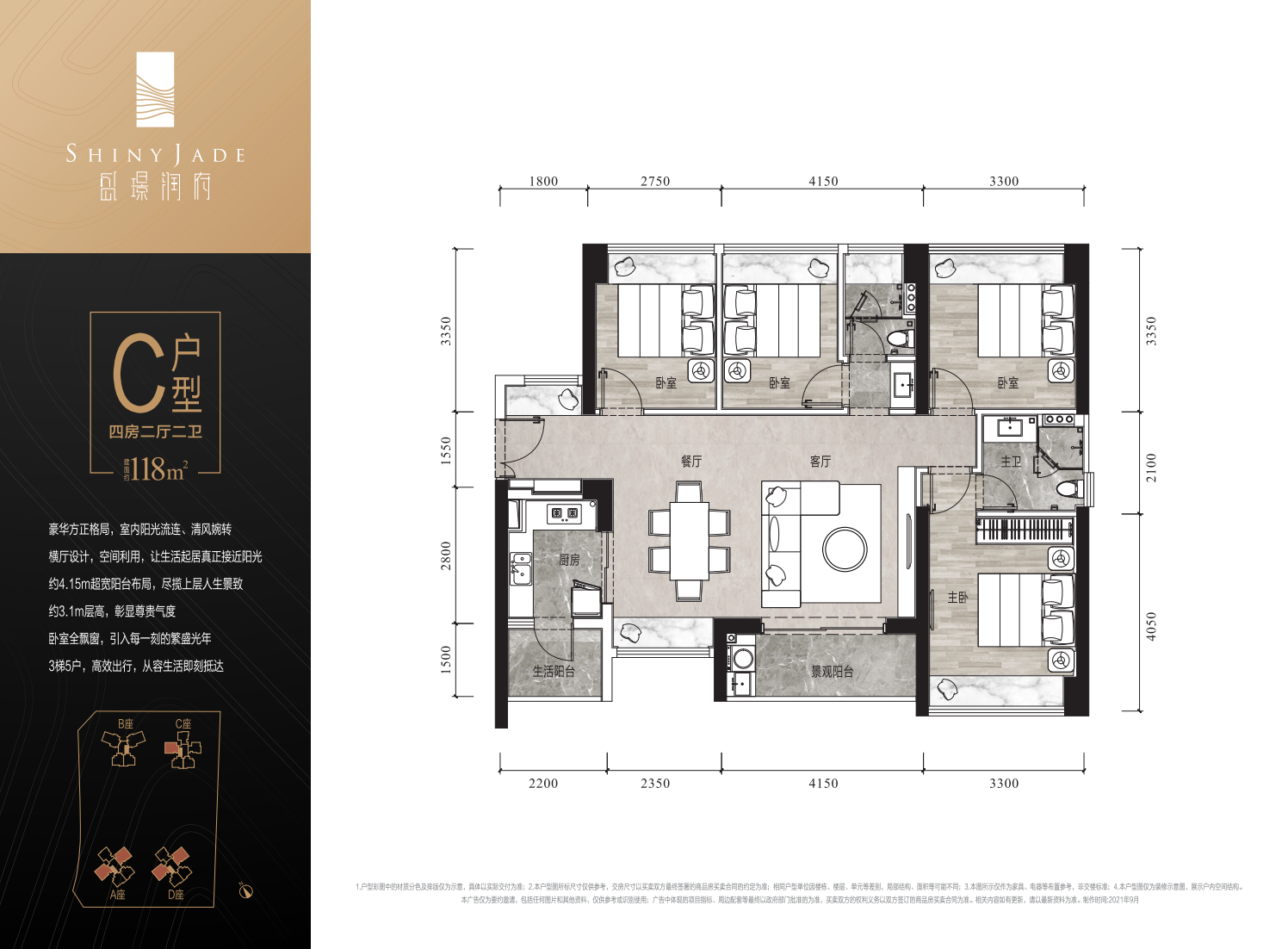豪华方正格局,室内阳光流连、清风婉转 横厅设计,空间利用,让生活起居真正接近阳光 约4.15m超宽阳台布局,尽揽上层人生景致 约3.1m层高,彰显尊贵气度 卧室全飘窗,引入每一刻的繁盛光年 3梯5户,高效出行,从容生活即刻抵达