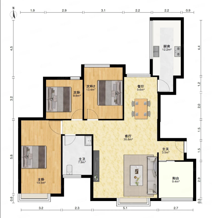 建面:105 ㎡ 62000 元/㎡