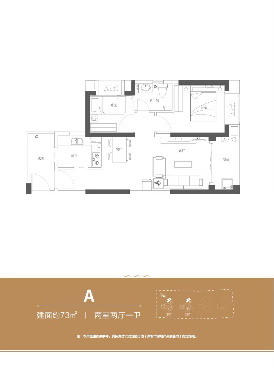 户型方正,格局紧凑,阔绰客餐一体厅、观景大阳台