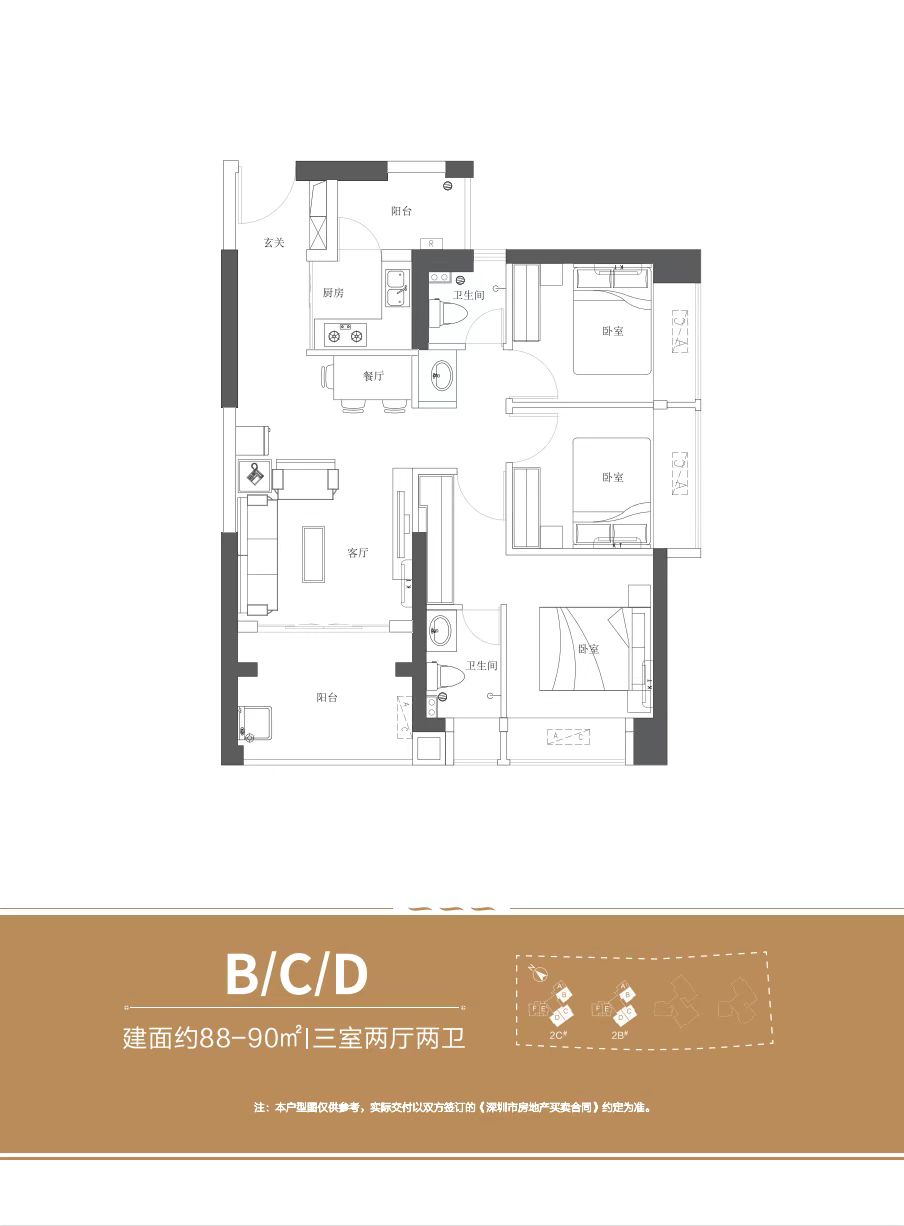 正南朝向,南北双阳台、大面宽观景